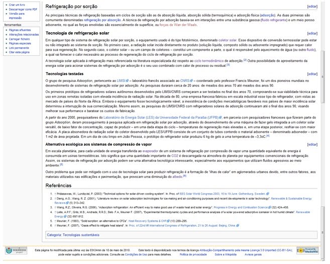 Tecnologia de Refrigeração Solar: Página criada na Wikipédia pelo autor do blog